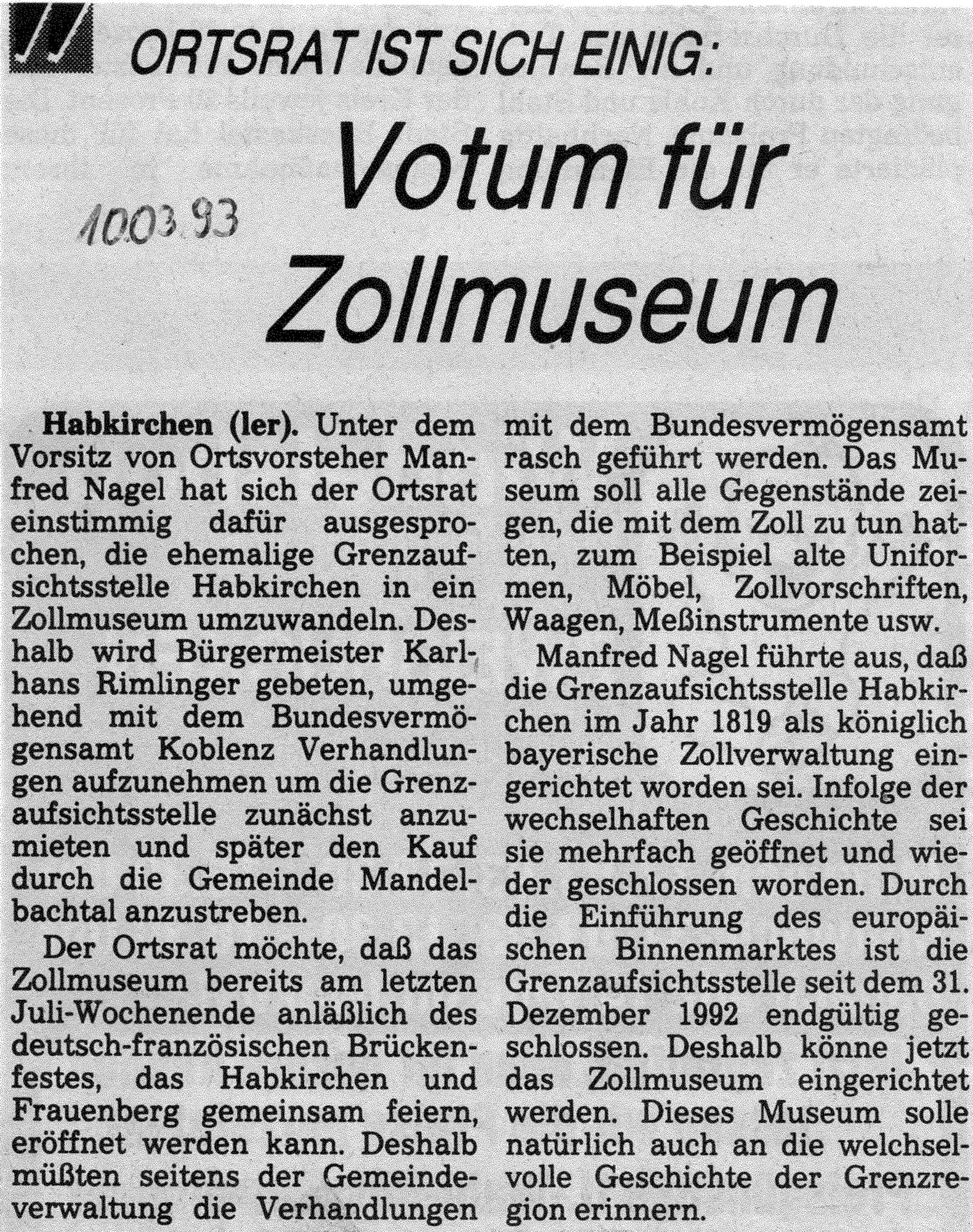 Presseberichte: 30 Jahre Zollmuseum Habkirchen